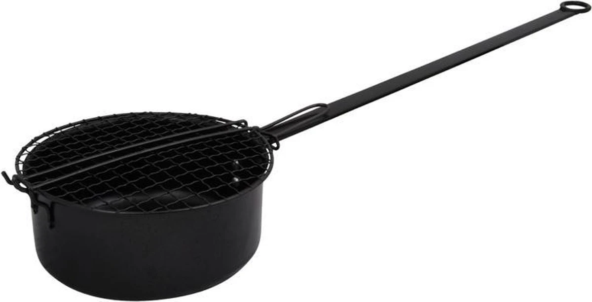 - Lange steel, gebruik de pan ook boven het kampvuur!