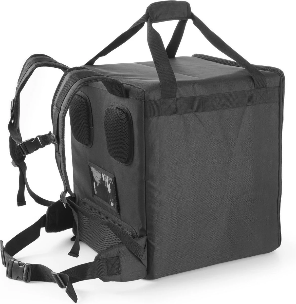Hendi isolerende bezorgtassen besparen u tijd en geld, en verhogen de kwaliteit van uw service. Uw product blijft warm en smakelijk tot voorbij de deur van de klant. De tijdswinst laat u meer klanten bedienen in dezelfde tijd. Lichtgewicht rugtas met grote, verstelbare, gewatteerde schouderbanden en gewatteerd ruggedeelte voor comfort. Voorzien van verstelbare tailleband voor extra stabiliteit. Waterdicht dankzij het gebruik van duurzaam 600D polyester. Groot compartiment bevat met klittenband verstelbare plank. Bied ruimte tot aan 10 pizzadozen. Compartiment heeft twee isolatielagen, PE-schuim en aluminiumfolie. Een zijde van de rugtas kan worden geopend met een ritssluiting voor gemakkelijke toegang. Met grote gewatteerde handgrepen aan de bovenkant en een transparante kaarthouder aan de achterkant. Reflecterende strip aan de buitenkant voor extra veiligheid.