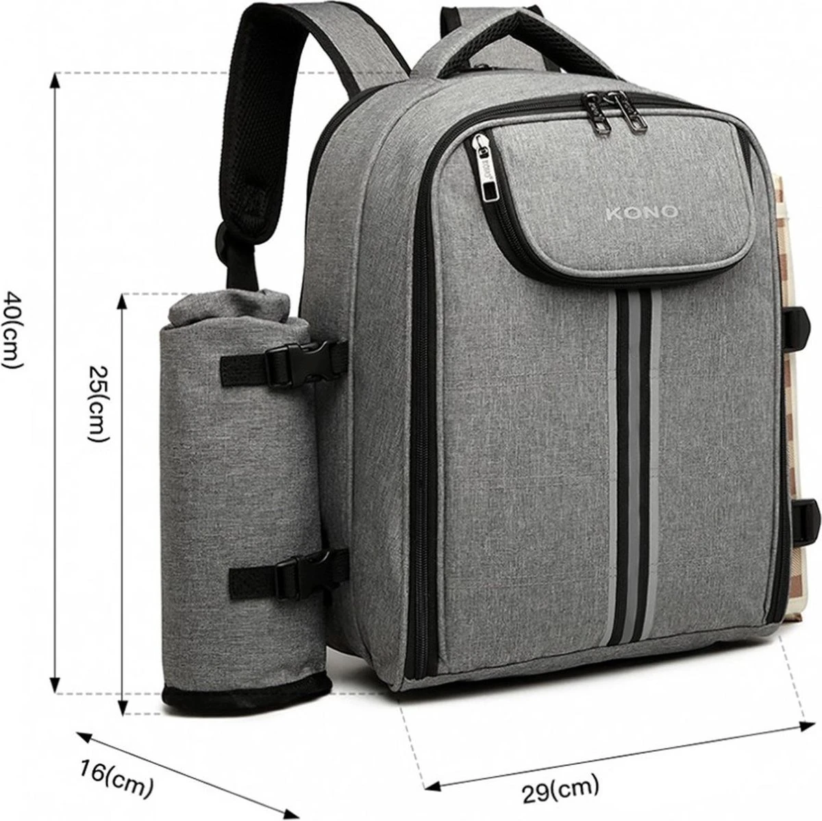 Deze handige picknick rugtas van Kono is onmisbaar tijdens elke reis. Of je nu wilt dineren in het park of een familie picknick in het bos hebt georganiseerd. Ga je backpacken? Ook dan neem je deze mooie picknick tas met je mee. De picknick rugtas is gemaakt van waterdicht en hoogwaardig textiel. De afmetingen van deze Kono picknick backpack zijn 29 cm x 40 cm x 16 cm.