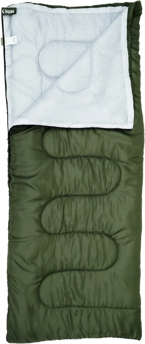| Verpakkingsinhoud | 1x Froyak Slaapzak Envelop model, kan aan een tweede slaapzak aangesloten worden. Practische draagzak inbegreoen Extra lang, 2 meter 200 x 80 cm |