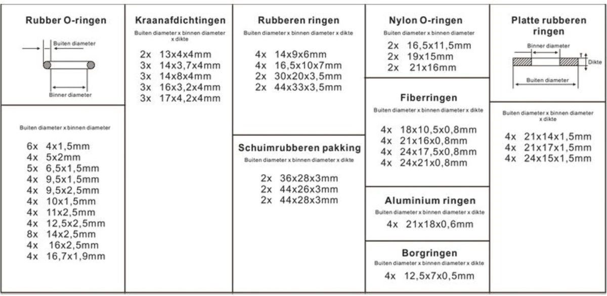 | Verpakkingsinhoud | 125 kraanrubbers |