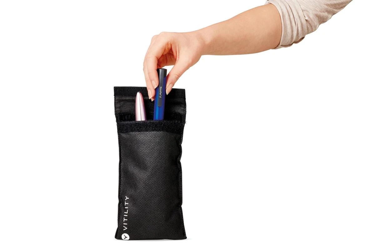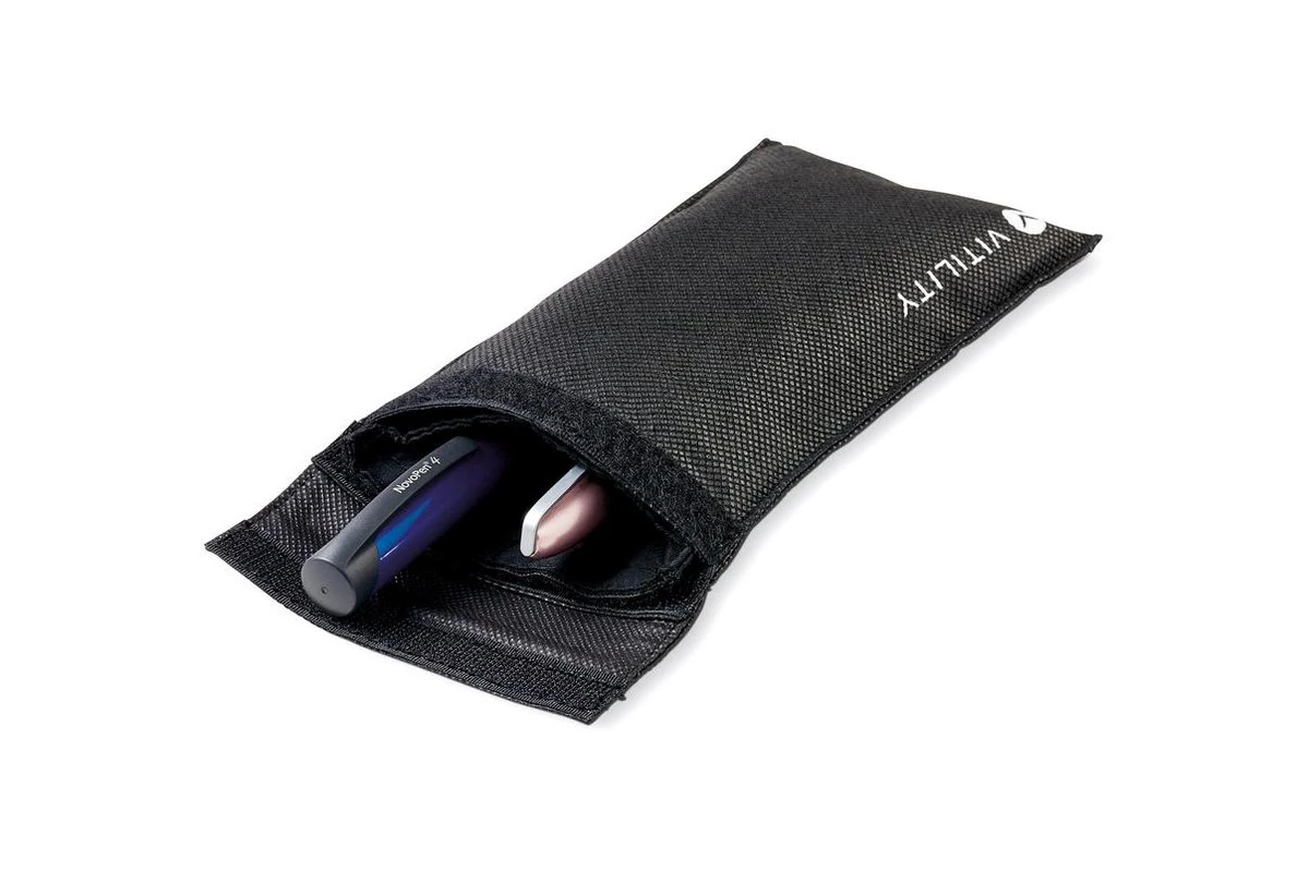 De cooling bag houdt onder meer uw insuline koel. Het bestaat uit een koel- en een beschermetui. Dompel het koeletui onder in koud water. De speciale gel is gelijkmatig verdeeld en absorbeert het water. Wring het overtollige water eruit. Plaats de insulinepennen in de bijgeleverde poly bags en daarna in het koeletui. Het etui kan vervolgens in de bijbehorende beschermetui worden geplaatst. Het blijft ongeveer vier dagen op kamertemperatuur (15 °C – 25 °C, afhankelijk van de omgevingstemperatuur) en kan vele malen opnieuw worden gebruikt.